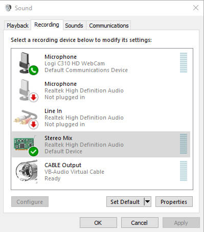 - Enable stereo mix as your default device.